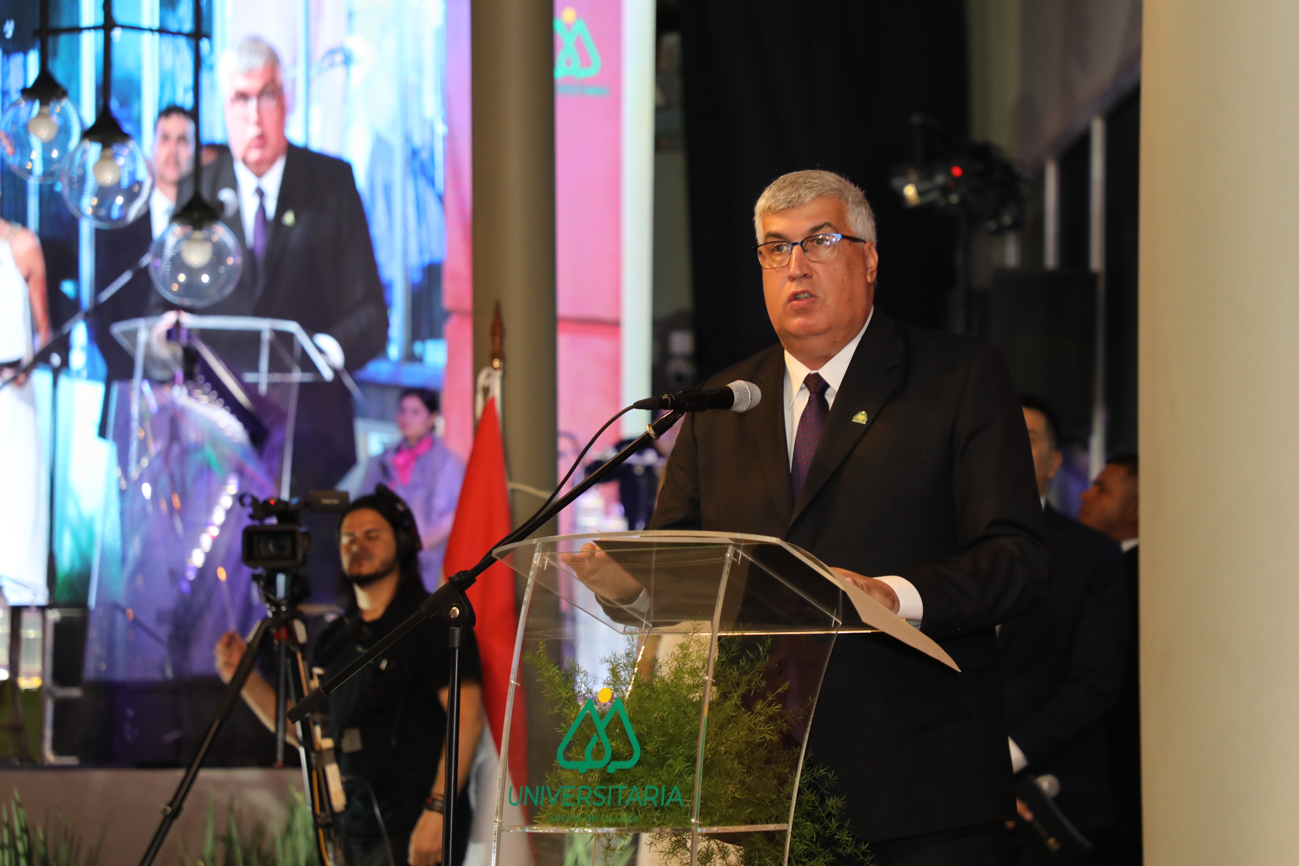 A lo largo de 50 años hemos sido parte de la historia de miles de familias paraguayas, a las que acompañamos en la transformación de sus sueños en hechos. Hemos sido protagonistas en la concreción del anhelo de la casa propia, de contribuir para que sus hijos sean profesionales miembros de esta familia. Los hemos acompañado en los momentos felices y también en las situaciones desafortunadas. Hemos sido, somos y seremos realizadores de sueños, fueron las palabras del licenciado Jorge Poisson, presidente del Consejo de Administración de Universitaria durante su discurso inaugural, acompañado de los miembros del Consejo de Administración, el gerente general Diego Segovia, empresas asociadas, dirigentes y la plana general de colaboradores, socios e invitados.