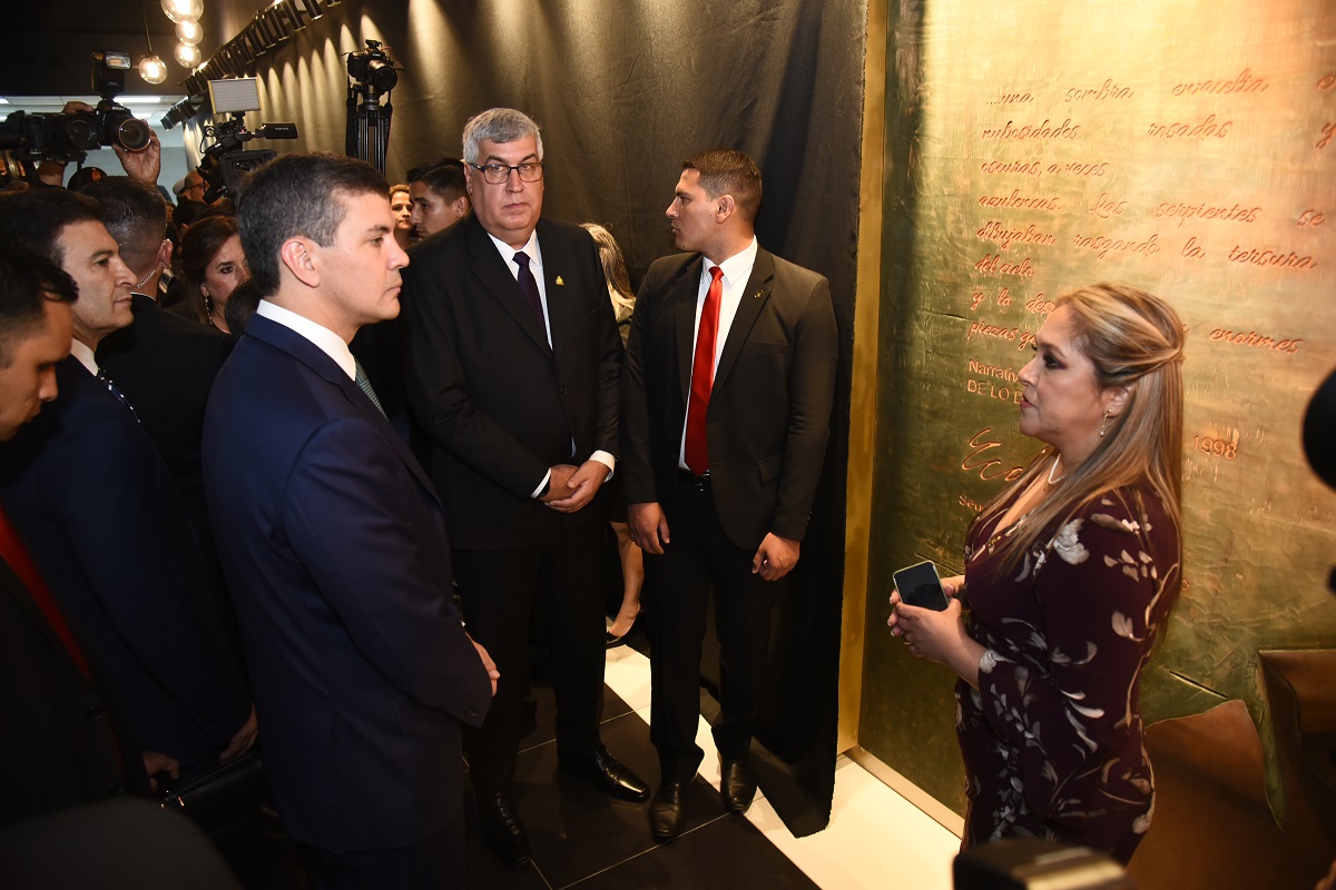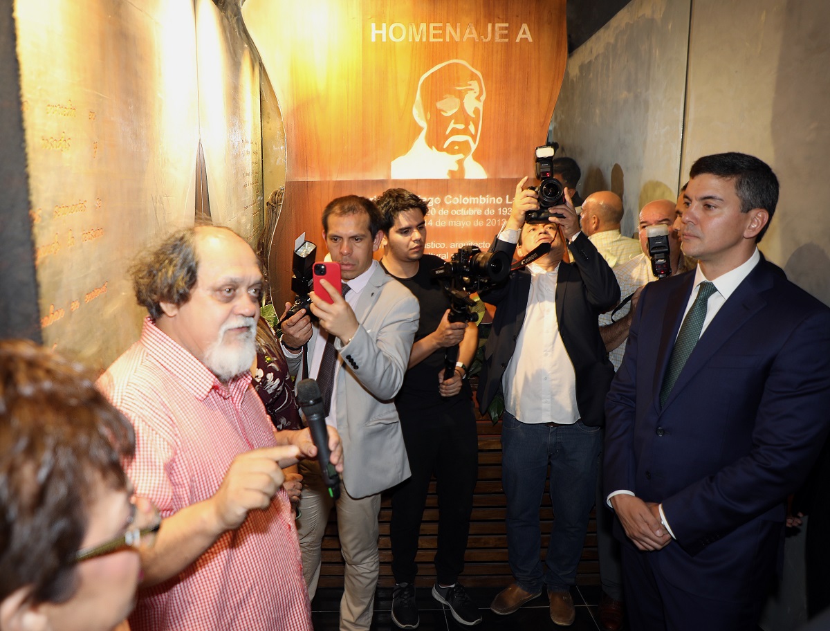Parte del evento inaugural contó con un recorrido por las instalaciones en la que se develó un mural en homenaje al artista plástico, arquitecto, escritor y gestor cultural paraguayo Carlos Colombino.