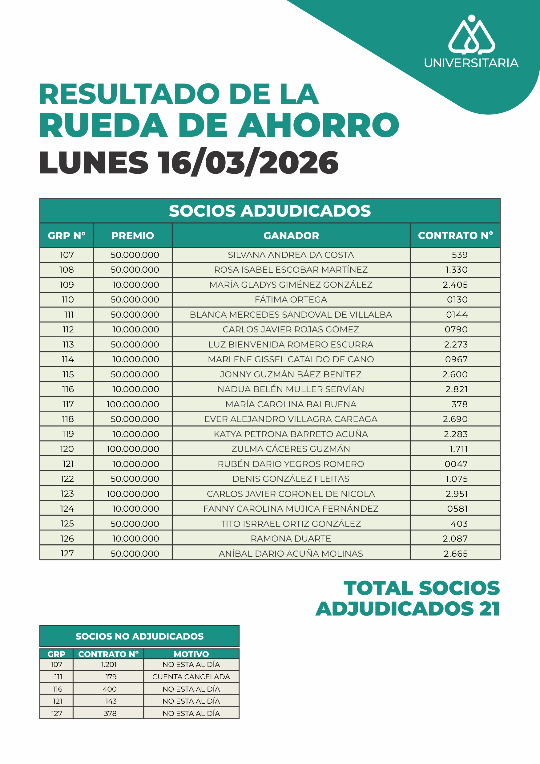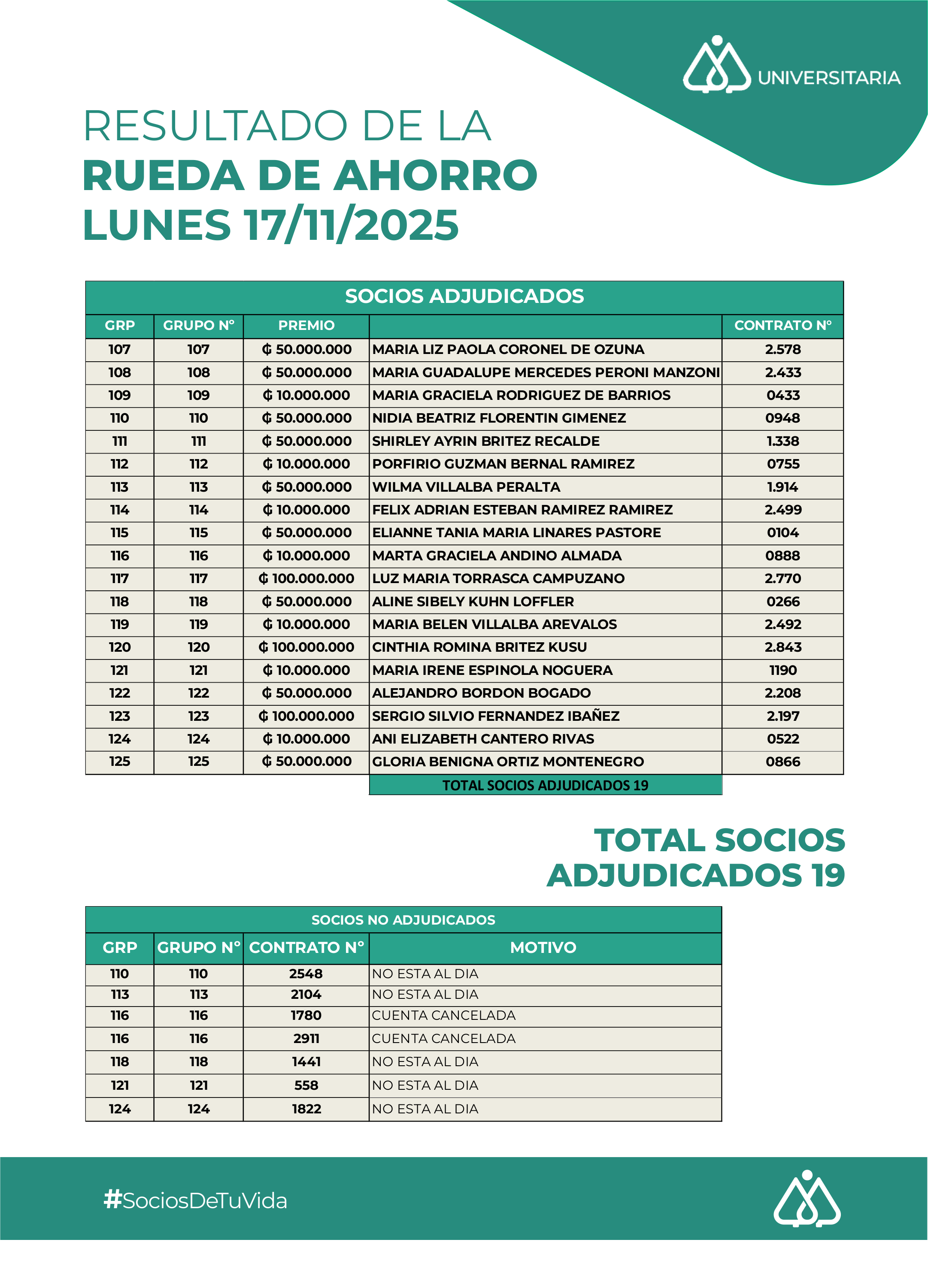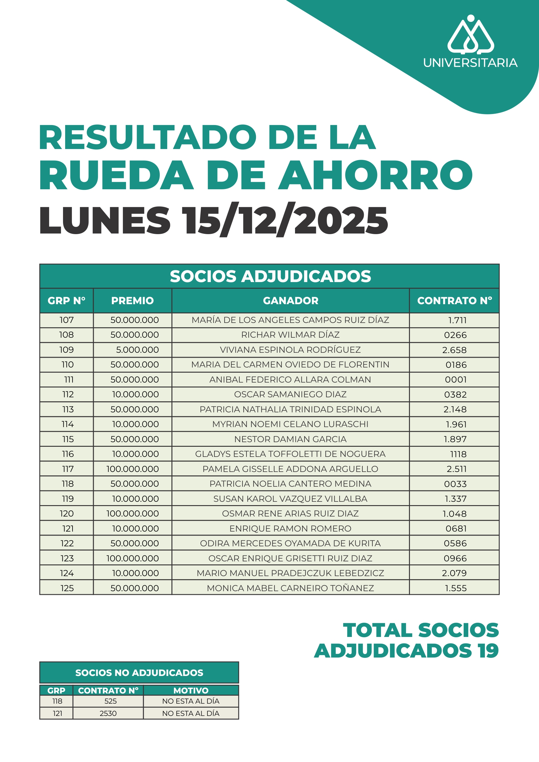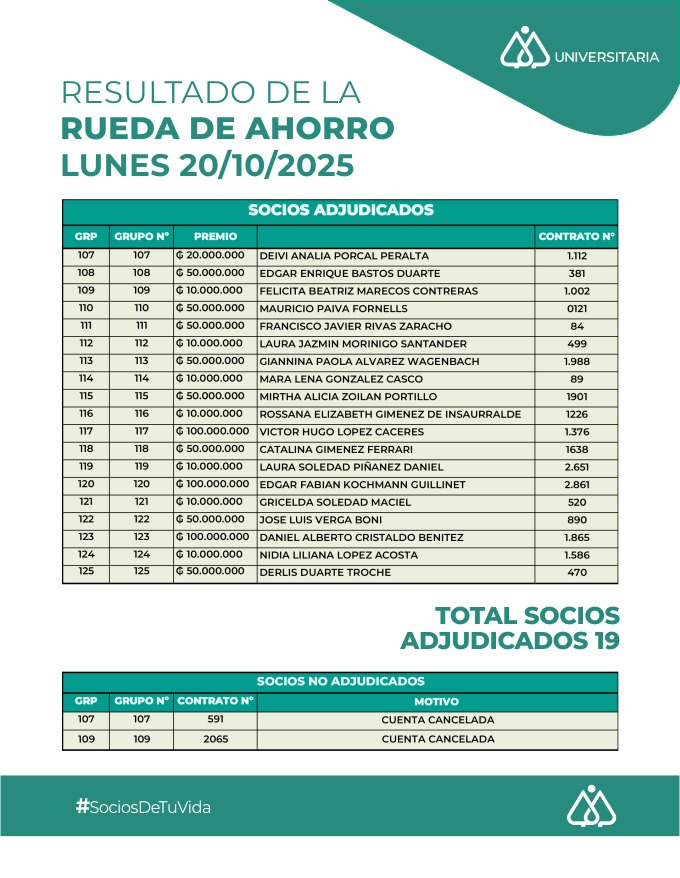 Resultados del Sorteo de Rueda de Ahorro